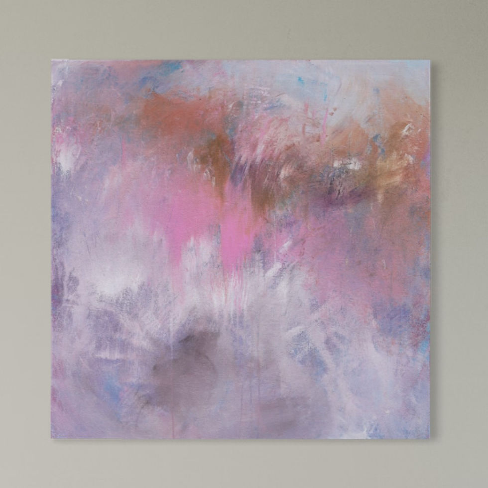 Un dettaglio ingrandito di olive mature e acerbe, sospese tra ombra e luce. Il colore diventa ritmo, la forma diventa materia viva. In Dialoghi d’Ulivo, l’artista esplora la potenza simbolica dell’ulivo attraverso una sintesi vibrante, dove viola profondo e verde brillante dialogano in equilibrio. Un frammento di natura che si fa gesto pittorico, memoria e risonanza mediterranea.